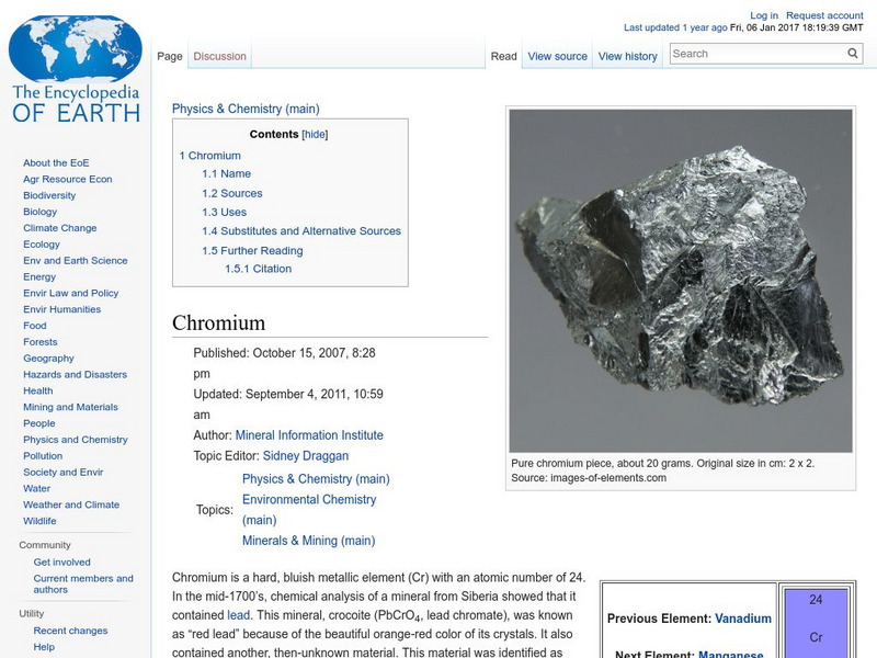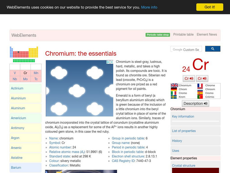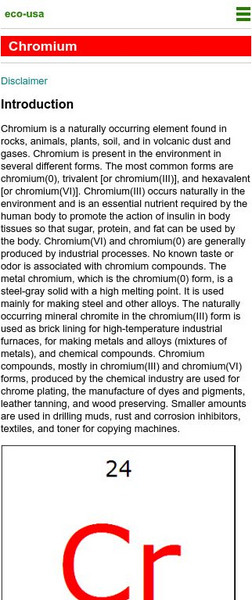 A short, well written summary of some of the most important information on chromium, including its uses.
