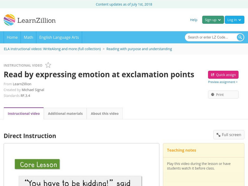 Learn Zillion: Read by Expressing Emotion at Exclamation Points