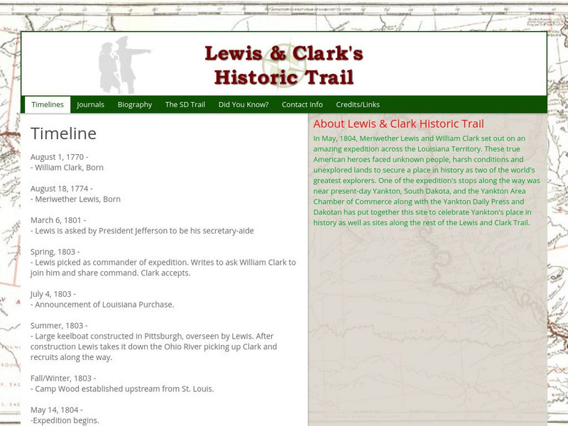Site provides specific information about the Expedition through South Dakota. Biographies and journal entries from Lewis and Clark are included.