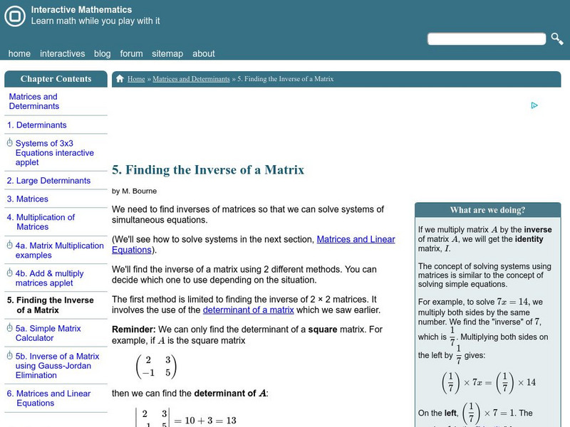 Interactive Mathematics: Finding the Inverse of a Matrix