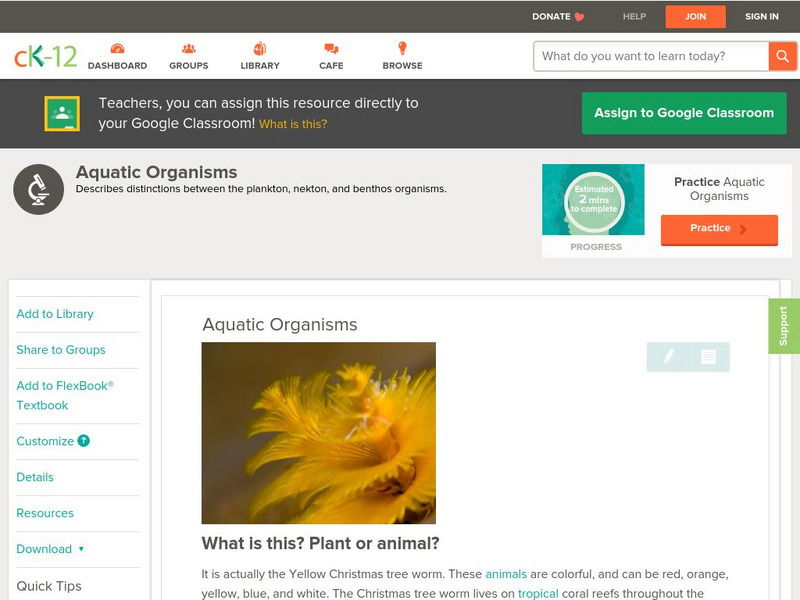 [Free Registration/Login may be required to access all resource tools.] Overview of aquatic organisms.