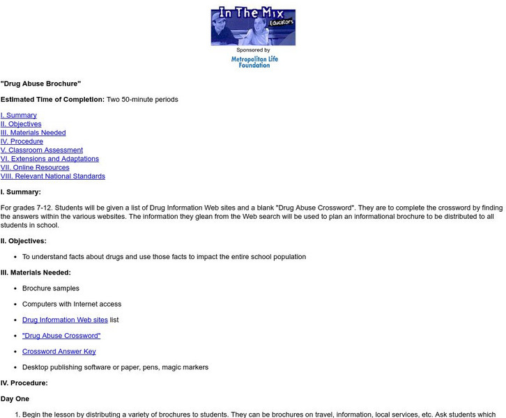 Explore facts about drug abuse, and use the information to plan an informational brochure to be distributed to all students in the school.