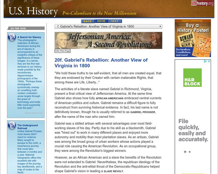 U.s. History: Gabriel's Rebellion: Another View of Virginia