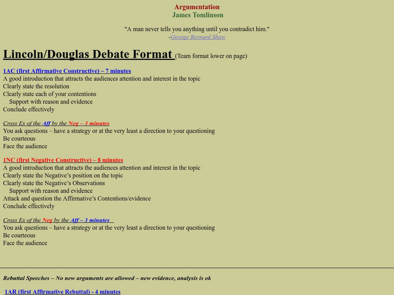 Dr. Tomlinson provides basic outlines of the two most prominent debate formats including time limits and the characteristics of each phase of the debate.