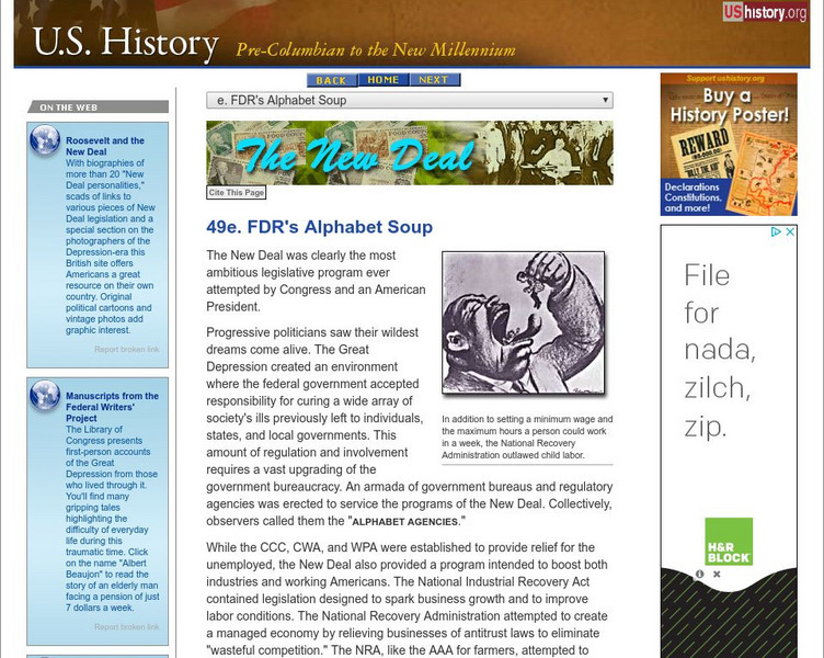 Amazing number of agencies formed as a result of New Deal legislation. Read about the agencies and legislation whose acronyms have become part of governmental history.