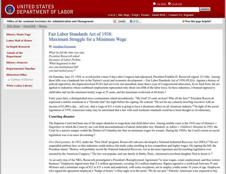 U.s. Department of Labor: Fair Labor Standards Act of 1938