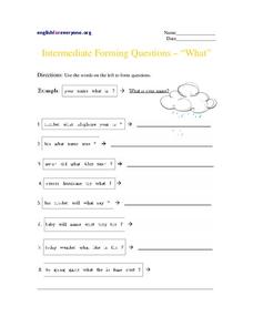 Students unscramble 8 groups of words to form complete questions using the word "what" on the lines provided. This inventive worksheet should be perfect for young writers.
