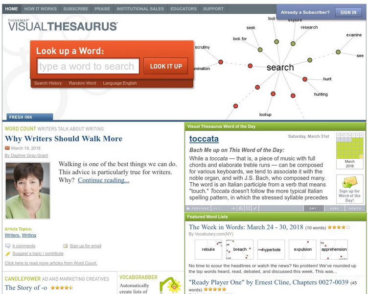 The most visual thesaurus you will ever see! Watch words become alive and move in front of your eyes. This resource offers a trial version free, which only allows you to look up a certain number of words before it makes you pay....