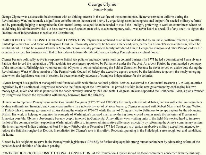 A nice biography of this delegate to the Constitutional Convention from Pennsylvania. He served in the Revolutionary Army and later was a Congressman.