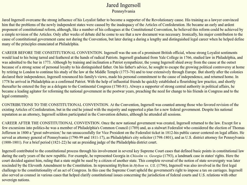 This article gives highlights on the career of this delegate from Pennsylvania to the Constitutional Convention. Ingersoll was considered one of the best lawyers in Philadelphia at that time.