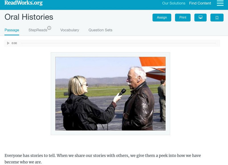 [Free Registration/Login Required] An informational text about the importance of listening to and writing about people's life stories. A question sheet is available to help students build skills in reading comprehension.