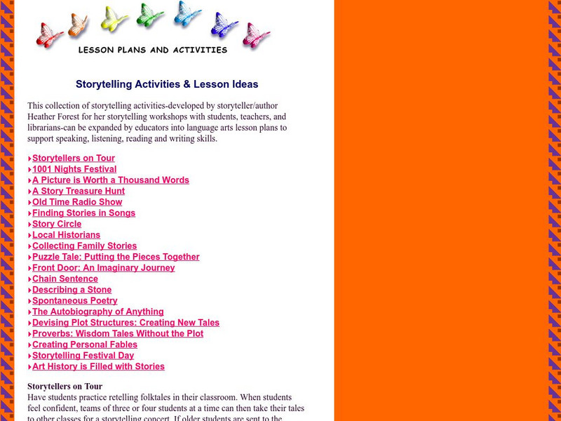 This collection of storytelling activities-developed by storyteller/author Heather Forest for her storytelling workshops with students, teachers, and librarians-can be expanded by educators into language arts lesson plans to support...