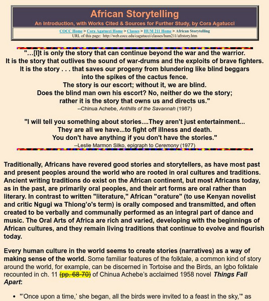This essay provides an excellent explanation of the importance of storytelling and what the author refers to as "orature," oral tradition as opposed to "literature" or written tradition. Clear examples are provided, including several...