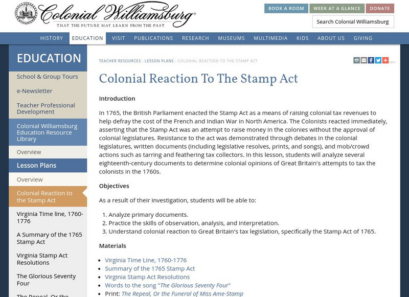 Colonial Williamsburg: Colonial Reaction to Stamp Act