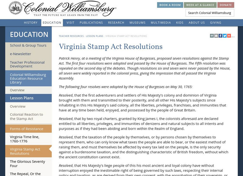 Colonial Williamsburg: Virginia Stamp Act Resolutions