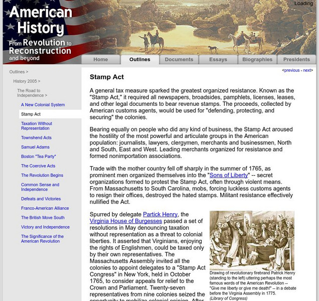This site explains background causes for the British Parliament's passage of the Stamp Act. It also contains arguments against the Stamp Act by famous colonists.