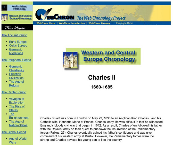 A short article on Charles II with a link to a timeline/chronology of monarchs of France, the Holy Roman Empire, and Great Britain.