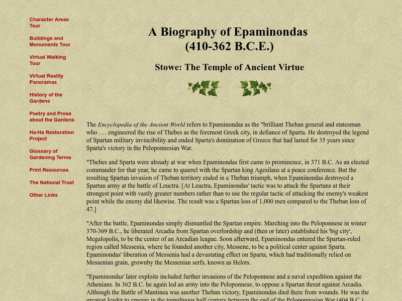 Stowe: Temple of Ancient Virtues: Biography of Epaminondas