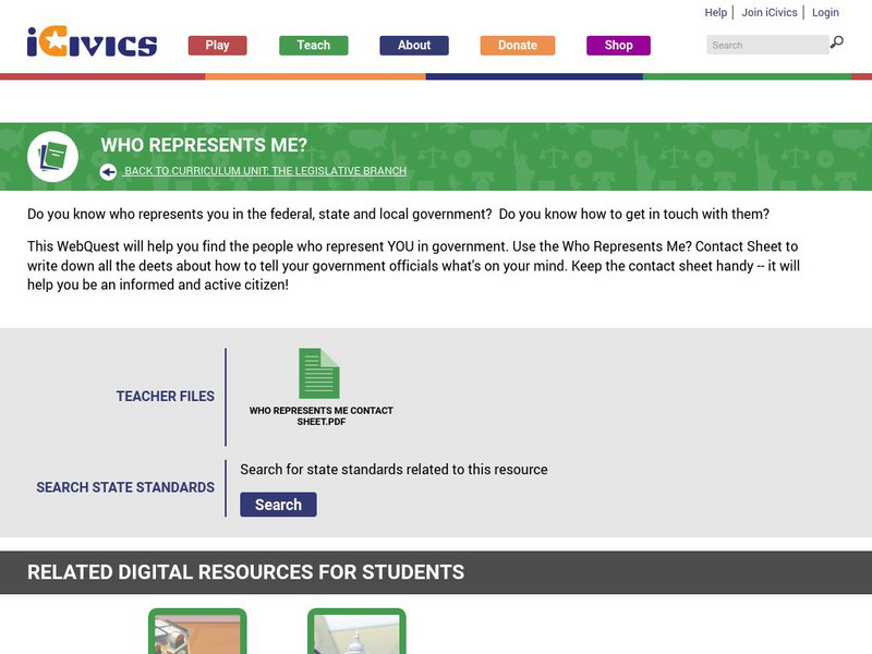 Do you know who represents you in the federal, state and local government? Do you know how to get in touch with them? This web quest will guide you through a number of web resources that will give you information about your...