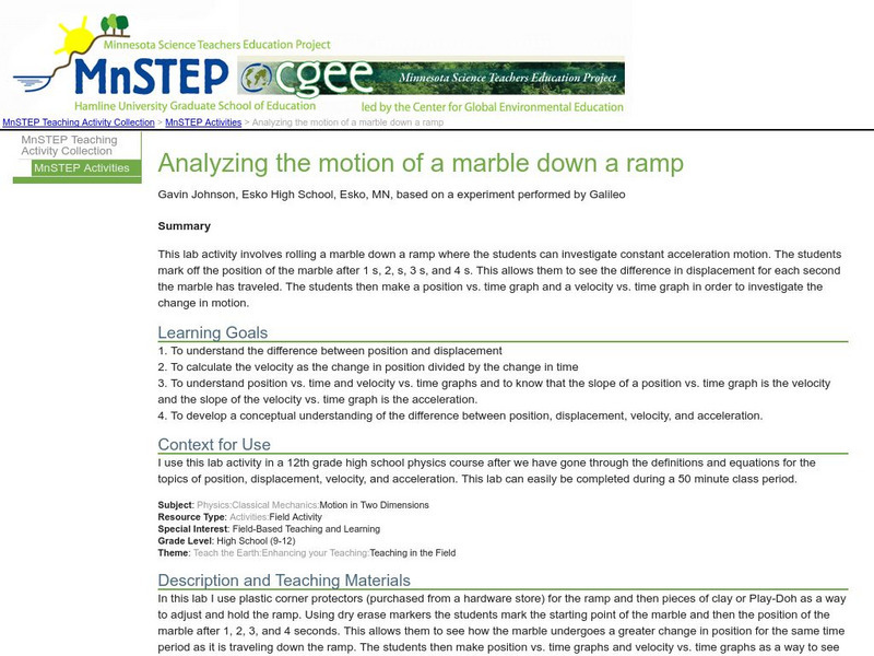 Serc: Analyzing the Motion of a Marble Down a Ramp