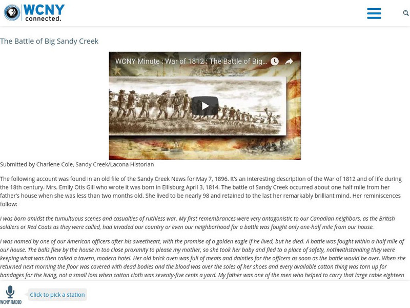 Text describes the Battle of Big Sandy Creek through primary and secondary source material. Part of a series on the War of 1812 battleground history sites of New York state. Text accompanied by brief, one minute video.