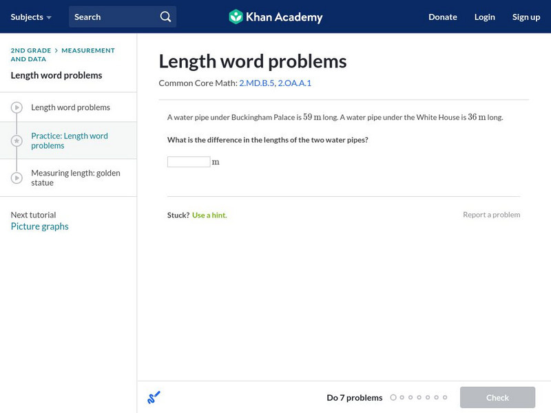 Add and subtract lengths to solve word problems. Students receive immediate feedback and have the opportunity to try questions repeatedly, watch a video or receive hints.