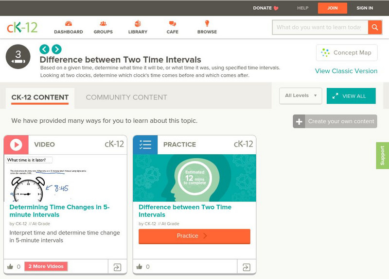 [Free Registration/Login may be required to access all resource tools.] Students watch a video and attempt practice problems on solving time word problems involving 5 minute intervals.