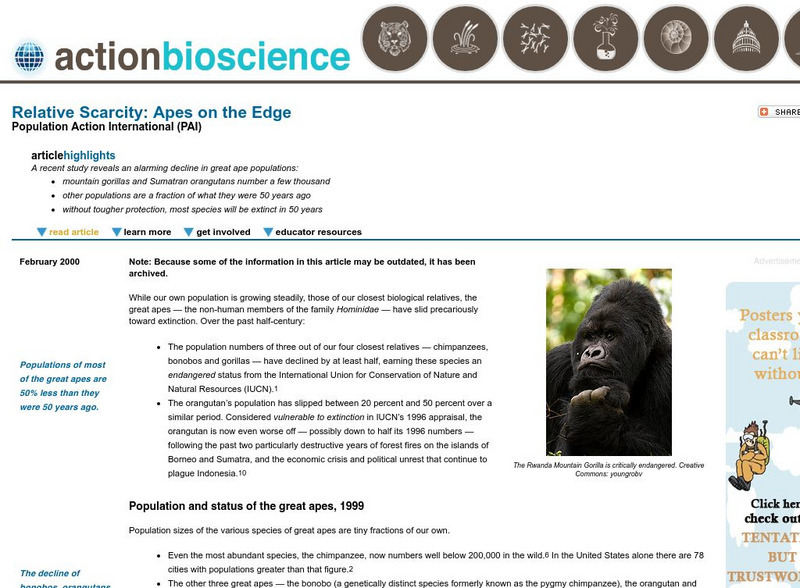 Action Bioscience: Relative Scarcity: Apes on the Edge