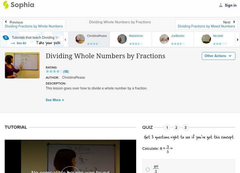 Sophia: Dividing Whole Numbers by Fractions: Lesson 2