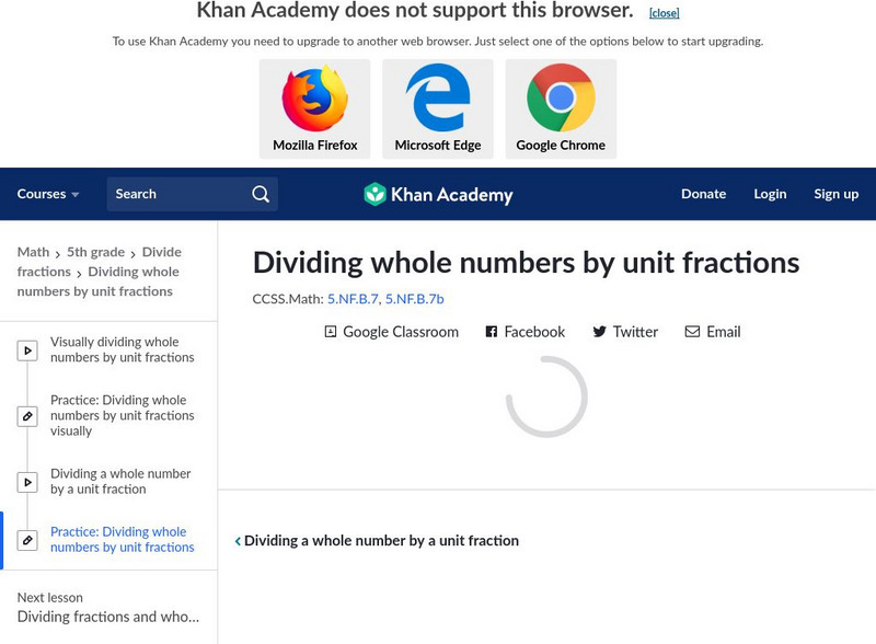 Khan Academy: Practice: Dividing Whole Numbers by Unit Fractions