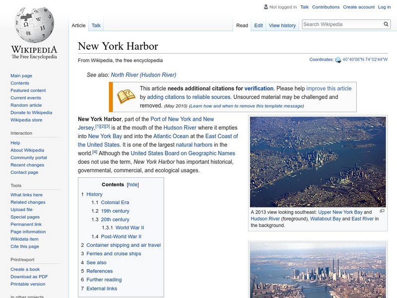 This Wikipedia entry provides information on ship harbors while clarifying the difference between harbors and ports. Topics include both natural and artificial harbors. Gives links to places that are examples of different types of harbors.