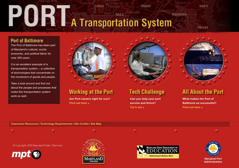 The Port of Baltimore is extensively covered with interviews, stories, interactive opportunities, and details about specific careers associated with the large harbor's transportation system that supports much of Maryland.