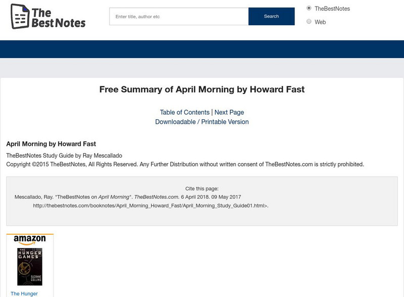 This is a complete online study guide/notes for the novel April Morning by Howard Fast including author information, literary elements, chapter-by-chapter summaries/notes, study questions, and analysis.