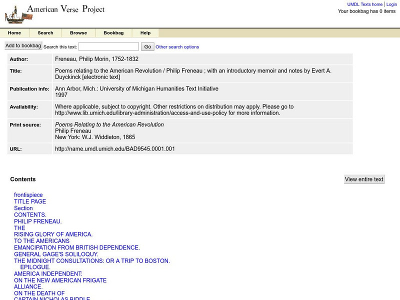 Although he was not, strictly speaking, a combatant in the American Revolution, Philip Freneau (1752-1832 CE) nevertheless spent time on a prison ship in New York Harbor. Some of the poems in this volume speak to that experience.