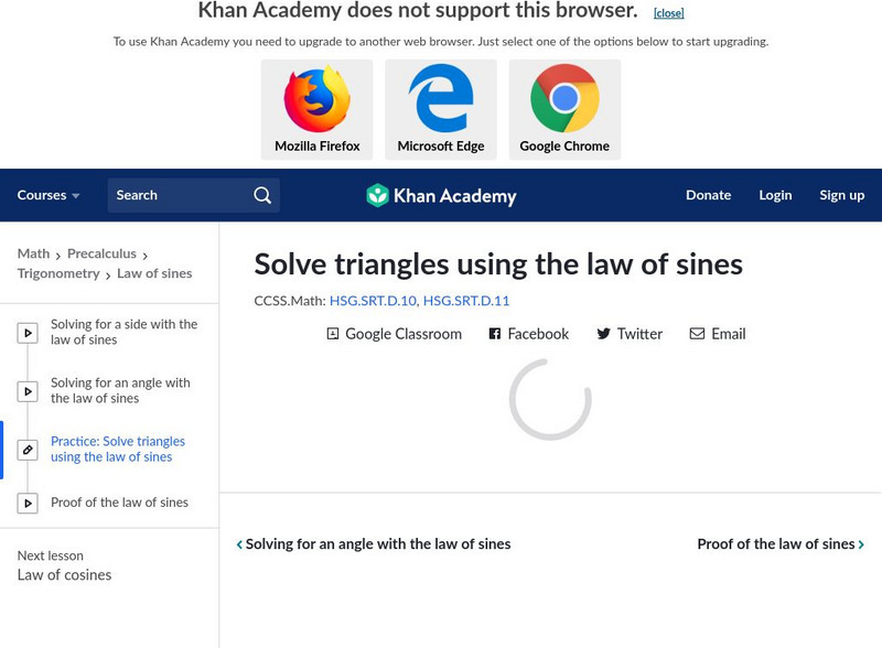 [Free Registration/Login may be required to access all resource tools.] Learn how to use the Law of Sines with different types of triangles.
