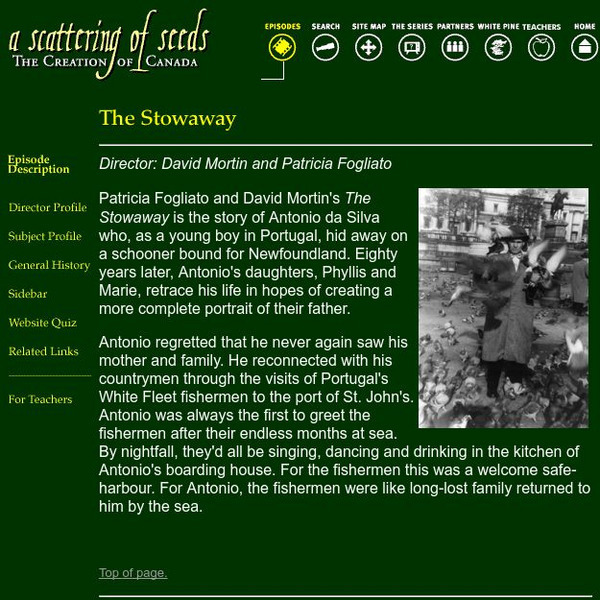 This site describes the background of a television documentary about a Portuguese man who stowed away on a ship to come to Newfoundland. Antonio da Silva stayed in touch with his homeland by inviting Portuguese fishermen to his home. The...