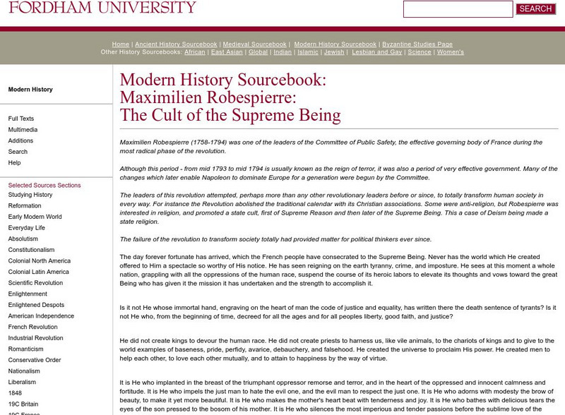 Fordham University: Modern History Sourcebook: Maximilien Robespierre: Cult of Supreme Bein