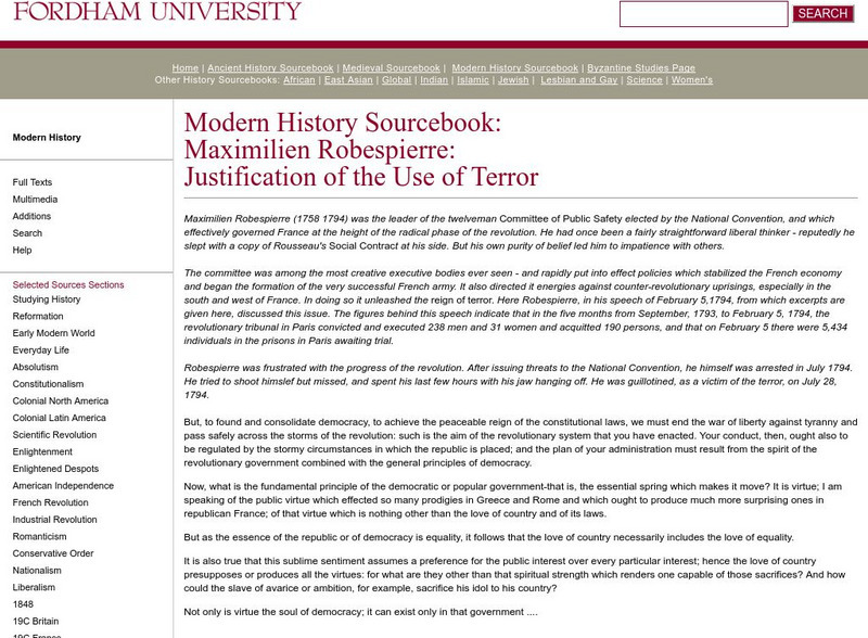Fordham University: Modern History Sourcebook: Justification of the Use of Terror
