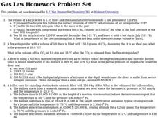 In this chemistry worksheet, students determine the mass of the gas when filling a bicycle tire with nitrogen. Then they determine the volume of a balloon when at specific altitudes. Students also determine the partial pressure of oxygen...