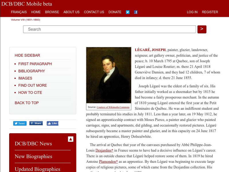 Very detailed biographical reference source for information on Canadian painter, collector, and politician Joseph Legare.