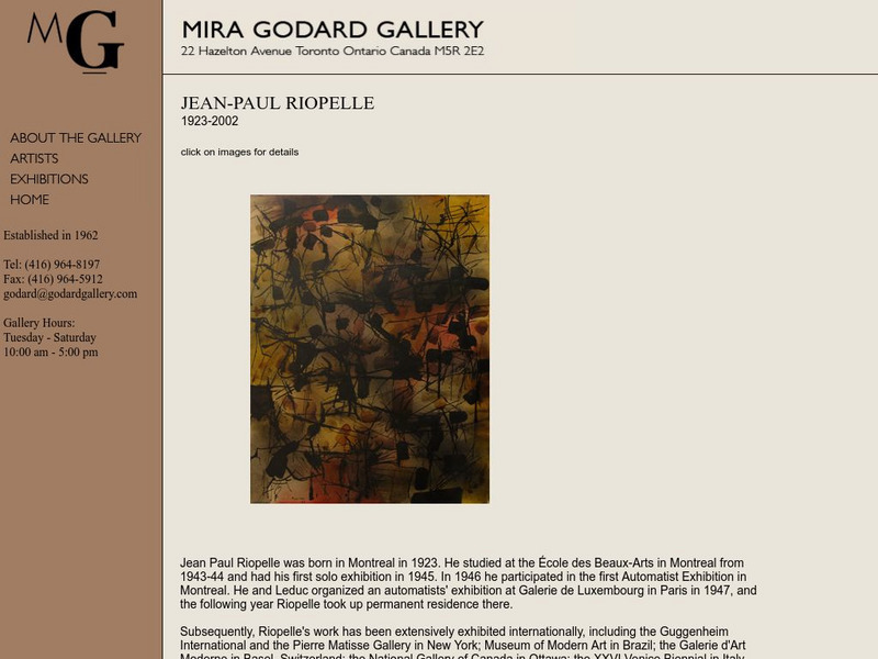 Featured is a painting by Canadian Abstract artist Jean-Paul Riopelle followed by biographical details on his life and works.