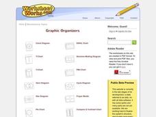 Students complete graphic organizers. In this graphic organizer lesson plan, students fill out various graphic organizers in order to better understand a comprehension skill. Eighteen graphic organizers are included.