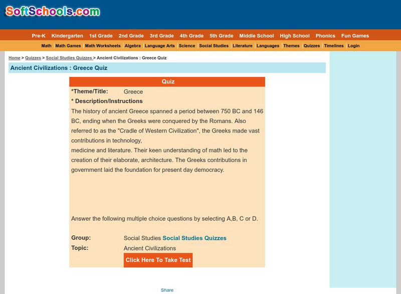 Soft Schools: Ancient Civilizations: Greece Quiz