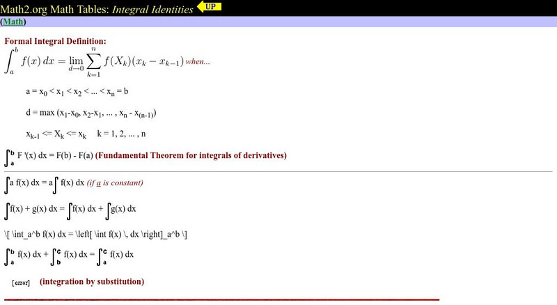 Math2.org: Table of Integrals
