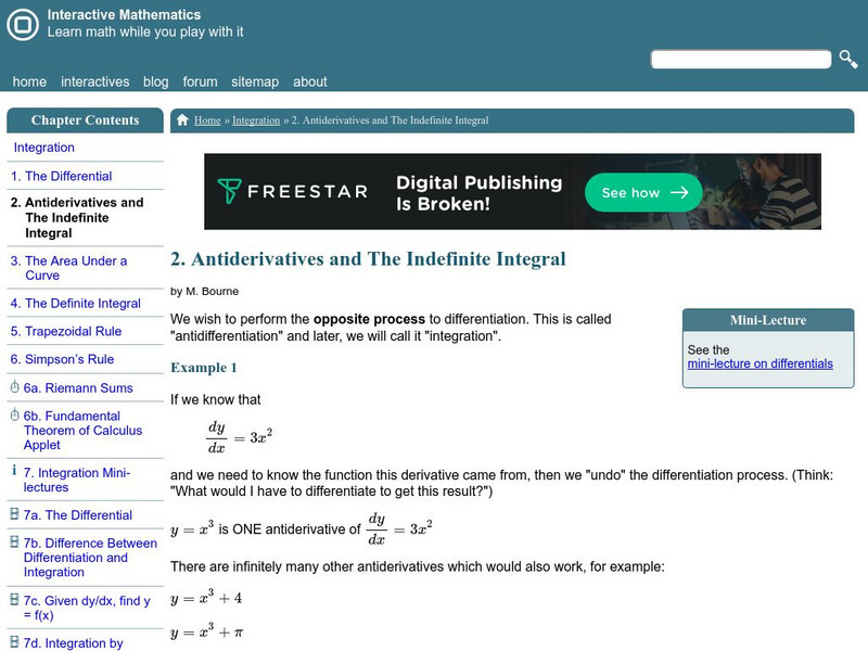 Interactive Mathematics: Antiderivative & Indefinite Integrals