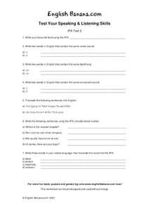 In this speaking and listening skills instructional activity, students will take a test on the International Phonetic Alphabet (IPA). There are a total of 7 questions.
