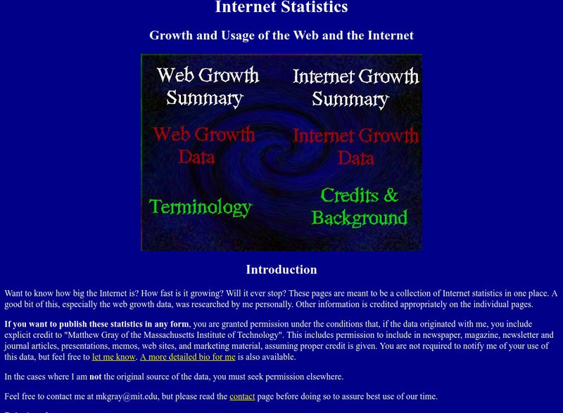 This site has some brief but helpful statistics about the growth of the Net and the Web.