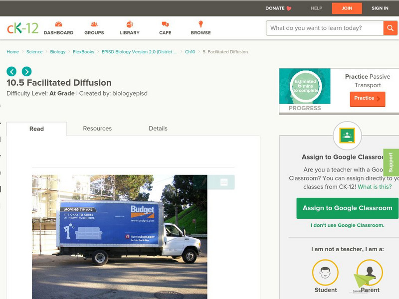 [Free Registration/Login may be required to access all resource tools.] In this activity students will learn about facilitated diffusion and the role of transport proteins, channel proteins, and carrier proteins.