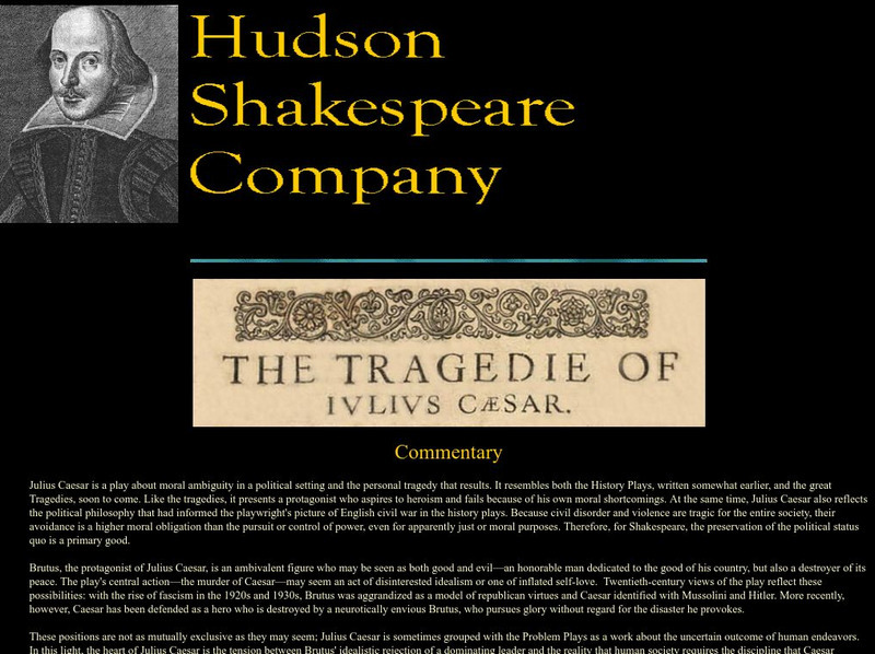 Hudson Shakespeare Company: The Tragedy of Julius Caesar: Commentary