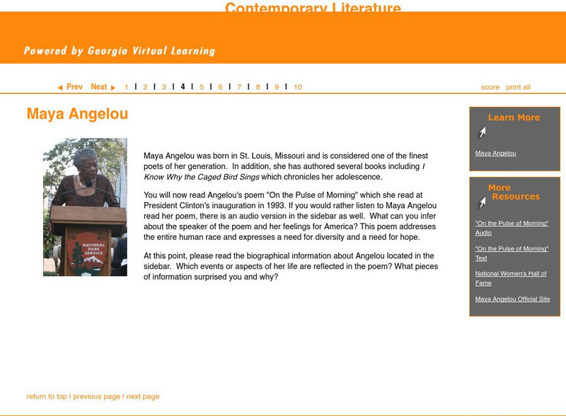 Ga Virtual Learning: Contemporary Literature: The Modern Poet: Maya Angelou